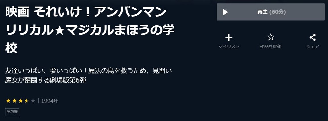 - 映画『それいけ!アンパンマン リリカル☆マジカルまほうの学校』を視聴できる動画配信サービス一覧