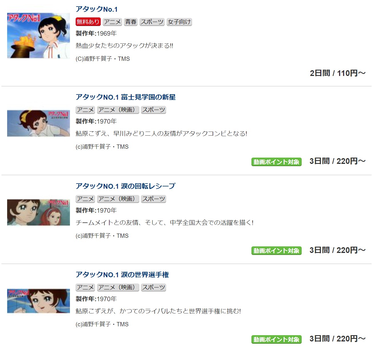 - music.jpで視聴できるアタックNo.1シリーズ作品