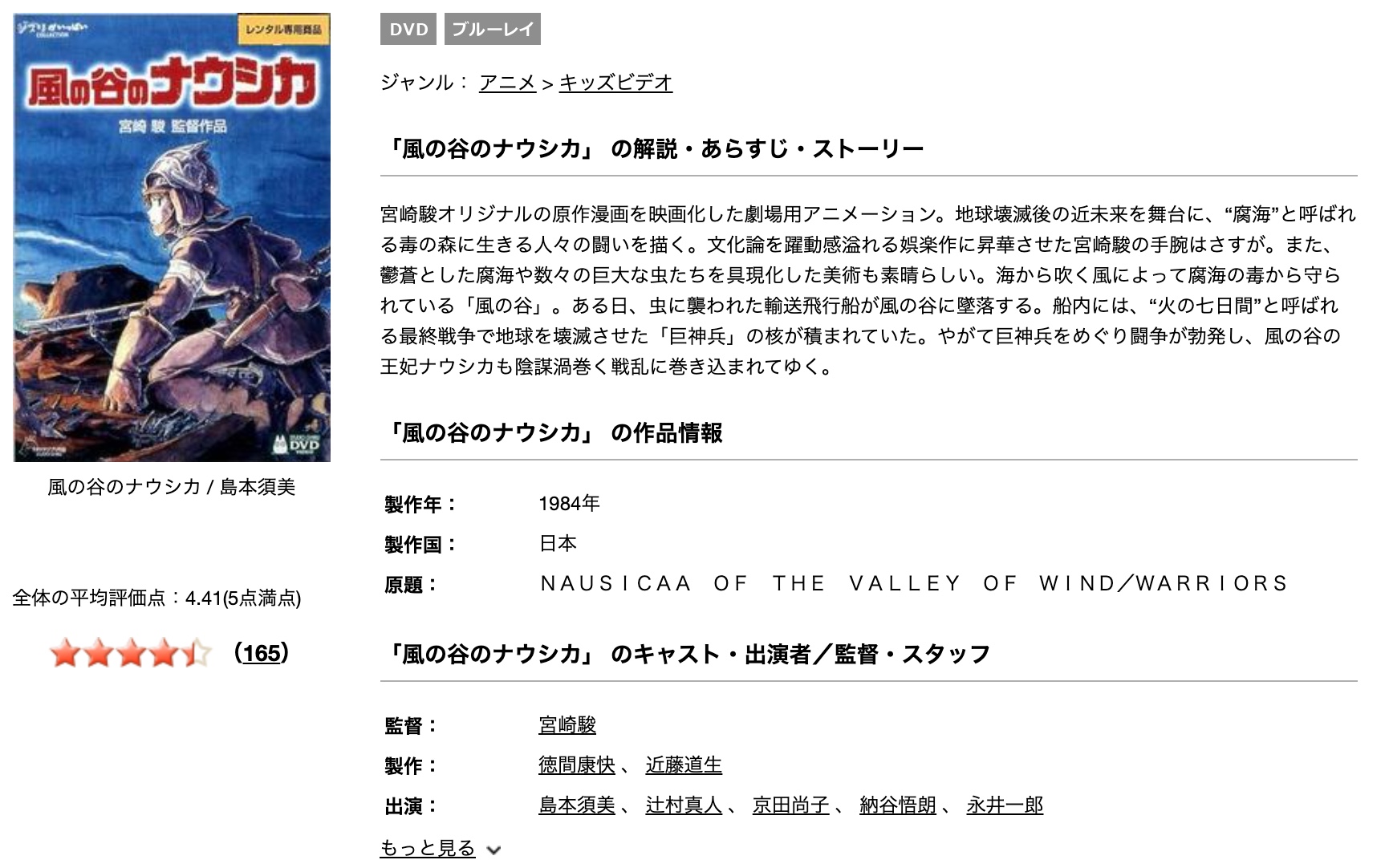 TSUTAYA DISCASで映画『風の谷のナウシカ』の動画を無料視聴