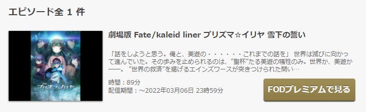 映画『劇場版Fate/kaleid liner プリズマ☆イリヤ 雪下の誓い』動画は、FODにてフルで無料視聴が可能です!